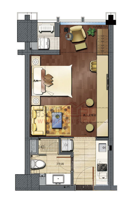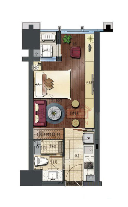 卧室:卧室朝南,采光非常好。。 卫生间:卫生间位于入口左侧,方便清洗脏鞋等。。 厨房:厨房为入口右侧,能更好的实现干湿分离(买菜回来不必经过客厅)。。 客厅:客厅连接卧室,容易采光。。