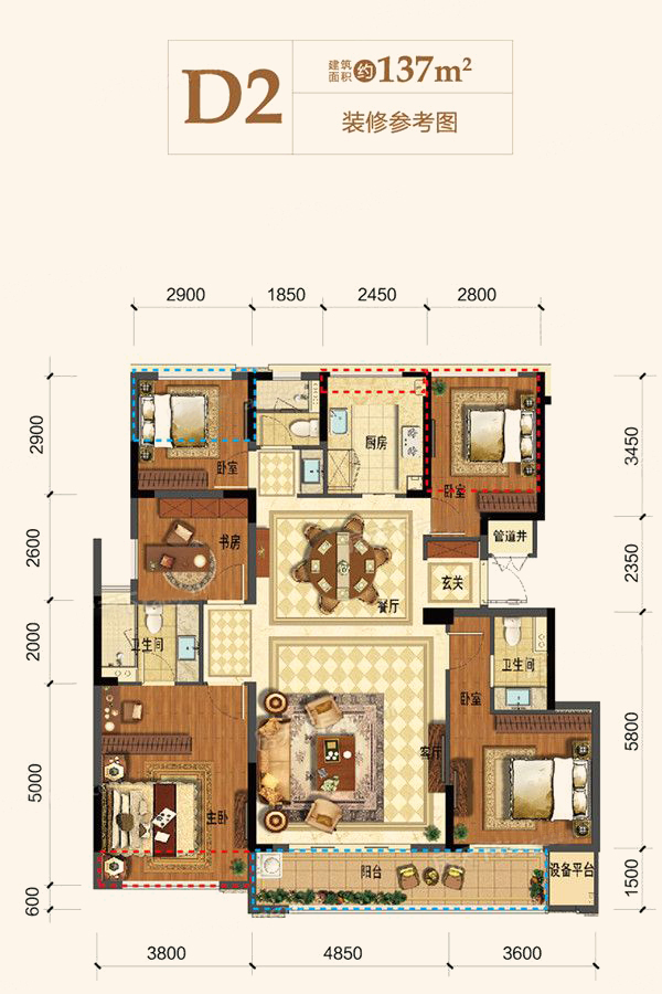 各个空间户型方正,方便室内家具布置;公卫没有对外窗户;整体空间布局合理,能够保证动静分离和居室通风,方便使用;客厅、卧室、卫生间和厨房等主要功能间的尺寸以及比例适中,有利于采光和通风,居住起来舒适、方便;公摊高于15%且低于25%,符合住宅公摊正常范围。