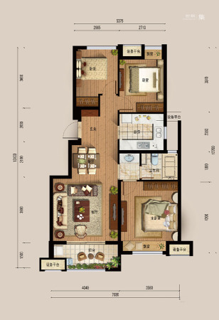 各个空间户型方正,方便室内家具布置;整个空间全明通透,采光良好,同时利于居住空间通风;卫生间朝向餐厅产生的气味及细菌对餐厅影响较大。各个功能区的尺寸比例规范,布局合理,能很好地满足日常功能需求,整体空间开阔,采光充足,居住舒适度好;公摊高于15%且低于25%,符合住宅公摊正常范围。