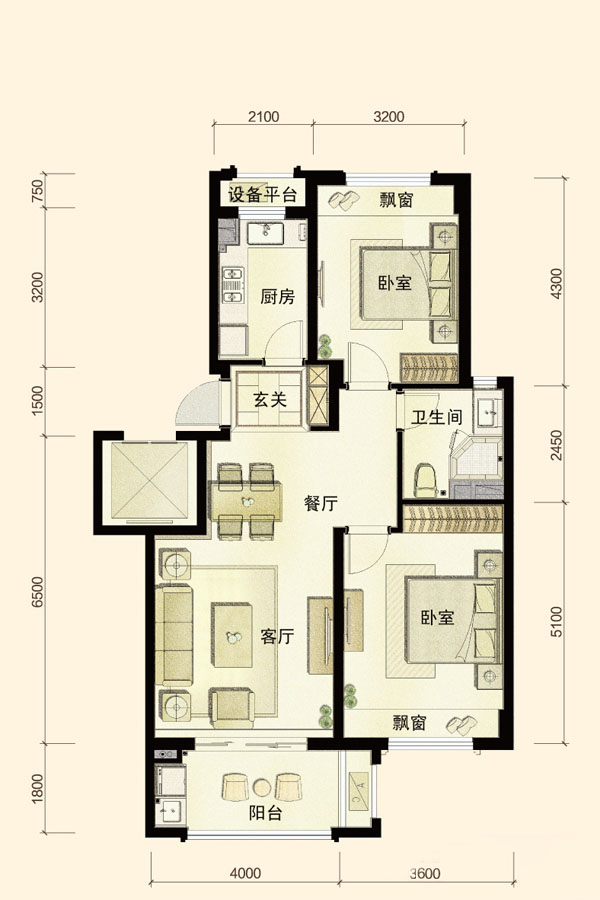 各个空间户型方正,方便室内家具布置;整个空间全明通透,采光良好,同时利于居住空间通风;卧室门朝向客厅或餐厅;各个功能区的尺寸比例规范,布局合理,能很好地满足日常功能需求,整体空间开阔,采光充足,居住舒适度好;公摊低于15%,属于目前市场中公摊很低的户型。