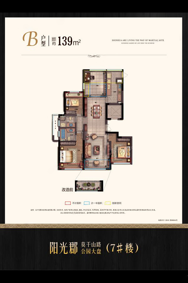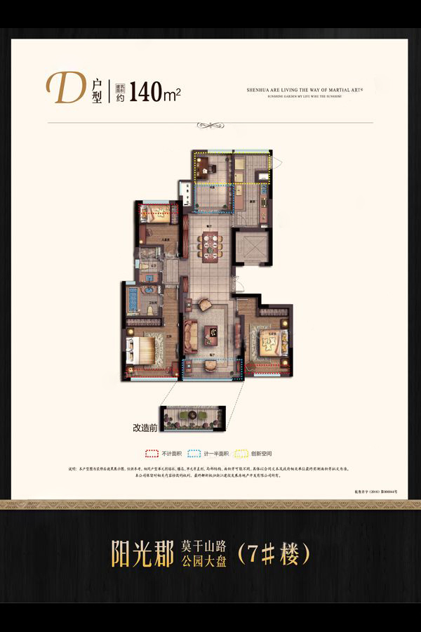 阳光郡占地150亩,总建筑体量近36万方,居住规模效应明显。阳光郡,雄踞莫干山路杭州大动脉,扼守杭州主城区发展格局,东临城市主干道莫干山路直达西湖风景区,北接全线修通的长青路连通申花成熟生活区, 与地铁2号线站点仅1公里距离,交通条件十分优越。 阳光郡多次深入深圳等南方一线优良户型重地,甄选户型,因地制宜,结合杭州市民的居住习惯,历经数次修改讨论,研磨出面积、功能、朝向等均好的户型,90方魔幻三房、110—140方舒适三房和华丽三房、160方以上豪华四房,为杭州主流家庭量身打造。?