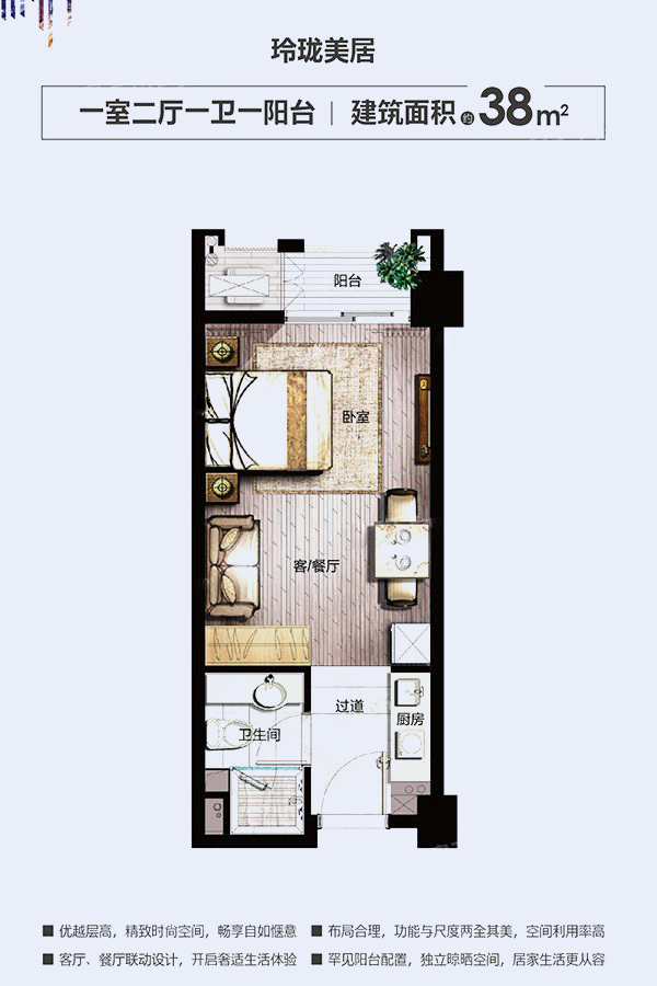 各个空间户型方正,方便室内家具布置;卫生间没有对外窗户,可通过加装排风机改善通风除湿;卧室进卫生间需要穿过餐厅或客厅;厨房空间不算开阔,可通过橱柜的合理布局改善空间;公摊高于25%。