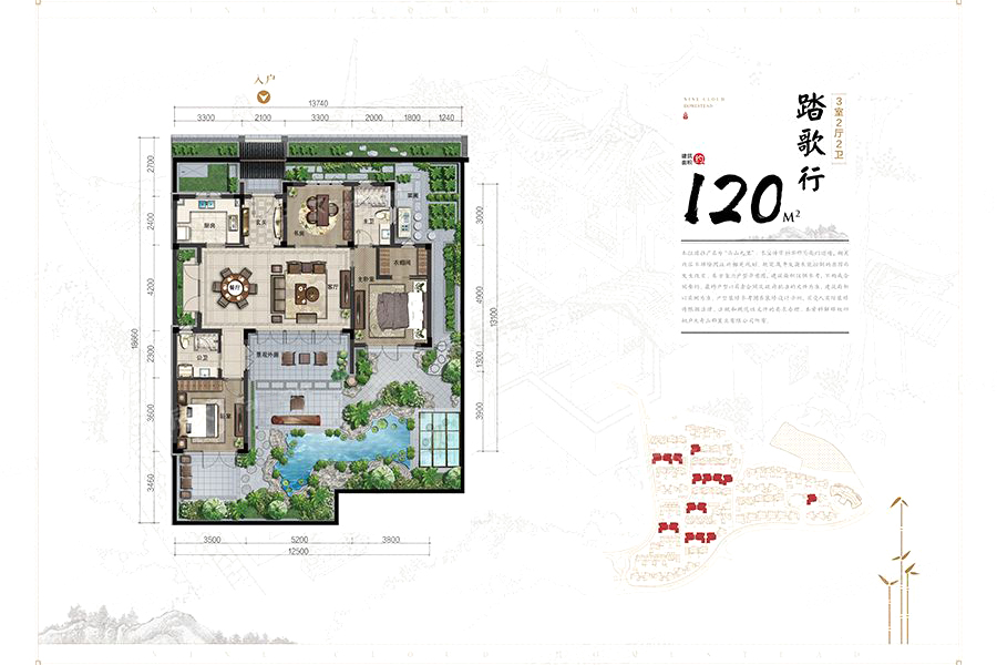 云山九里首期依循映山湖畔而建,举目皆诗画,精心规划93户中式精装小院墅,主力户型面积段90-190平米。云山九里以700公顷大奇山国家森林公园为邻,16.6万方湖漾碧波朝夕相伴,6级高负氧离子氧吧,天然山泉入户, 以大奇山碧水青山为画卷,以中华传统文化为墨, 致力于打造一个集中式院落、运动休闲、旅游度假、养生养老、耕心农场、弘扬中华传统雅士文化为一体的人间天堂,重塑中国人魂牵梦绕的院落生活,成为长三角地区高端雅士的心灵栖息地