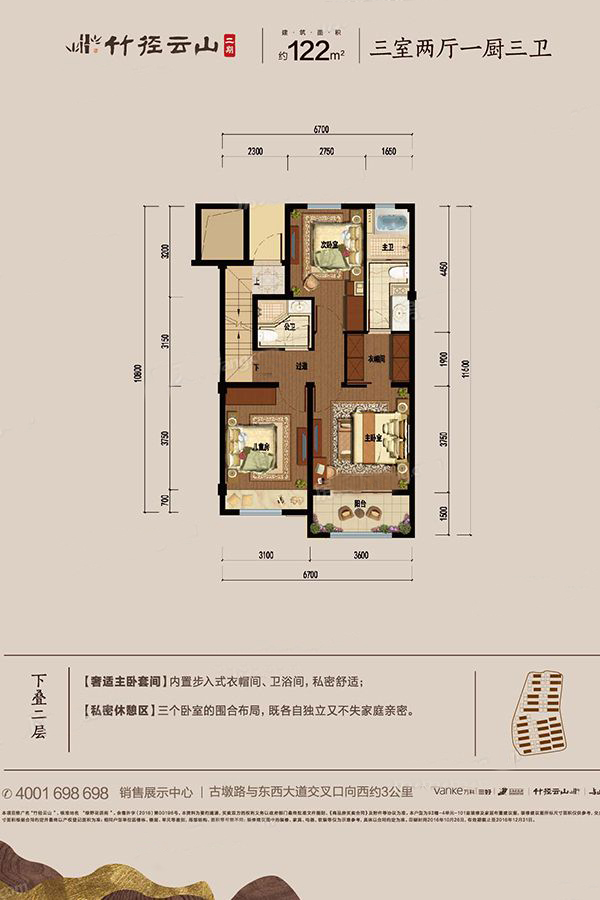 竹径云山3室2厅1厨3卫 总价待定